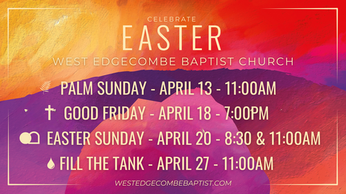 “FILL THE TANK” Sunday (April 27, 2025) – 11:00AM - A day of new beginnings! We are praying for a powerful movement of baptisms and transformed lives. If you've never taken this step, now is the time!